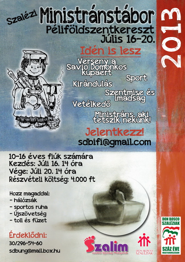 Idén július 16-20. között várják ministránstáborba a 10-16 éves fiúkat a Don Bosco Szaléziak Péliföldszentkereszten. A tábort Depaula Flavio atya vezeti rendtársai segítségével.